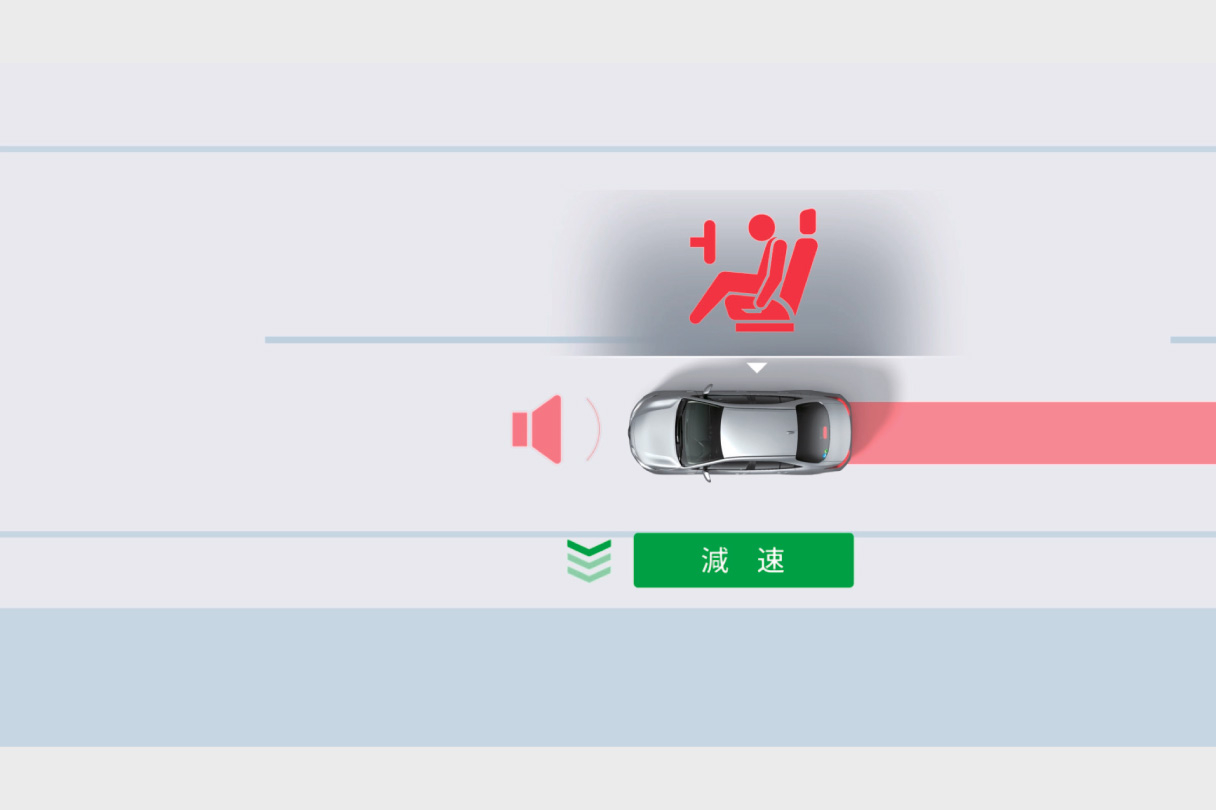 高速道路・自動車専用道路*1での運転において、渋滞時(0km/h~約40km/h)にレーダークルーズコントロールおよびレーントレーシングアシスト作動中にドライバーが前を向いているなど一定の条件を満たすとシステムが作動。認知、判断、操作を支援することで、ドライバーは渋滞時の疲労の軽減が可能となり、より周囲に注意を払った安全運転が可能になります。