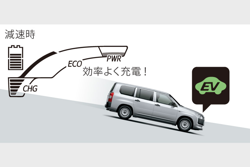 燃費優先の走りに制御。アクセル操作に対する駆動力とエアコンの消費電力などを省エネ化します。