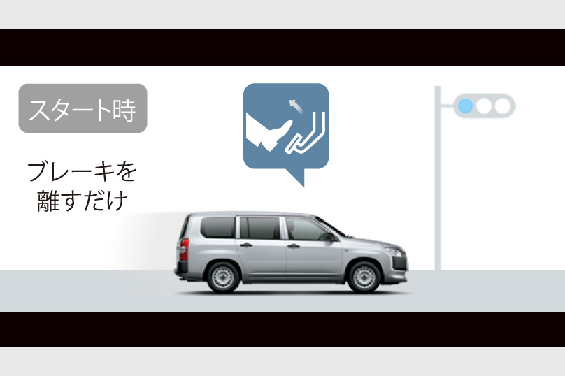 坂道でアイドリングストップ状態から再始動する時は、坂道発進補助機能が車両の後退を抑制します。