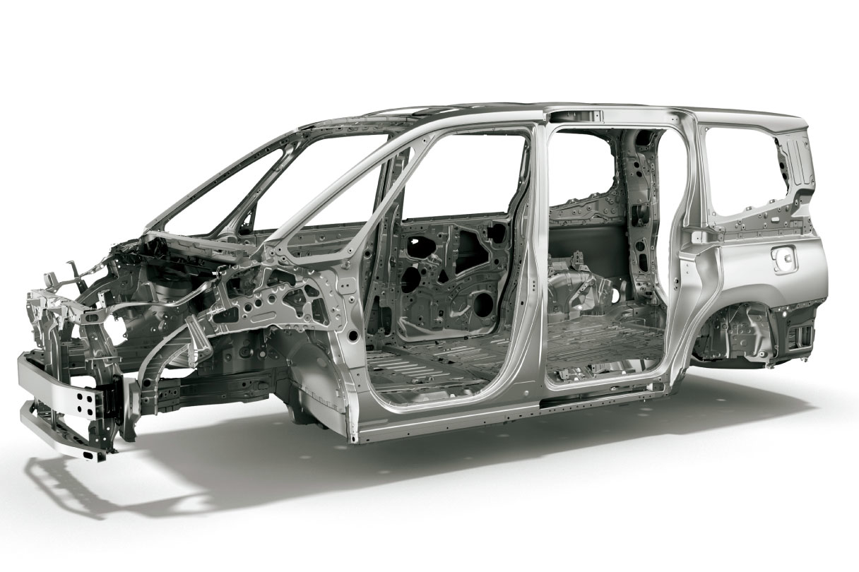 スライドドアやバックドアの開口部剛性を確保したほか、ボディ剛性に効果的なスポット溶接を実施し、骨格の結合部を強化。優れた乗り心地を実現しました。また、ロッカーストレート構造や操安ブレースなどの採用により、優れた操縦安定性を確保しています。