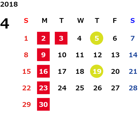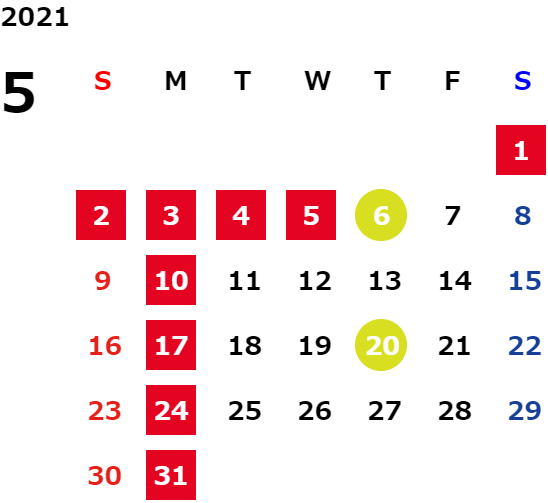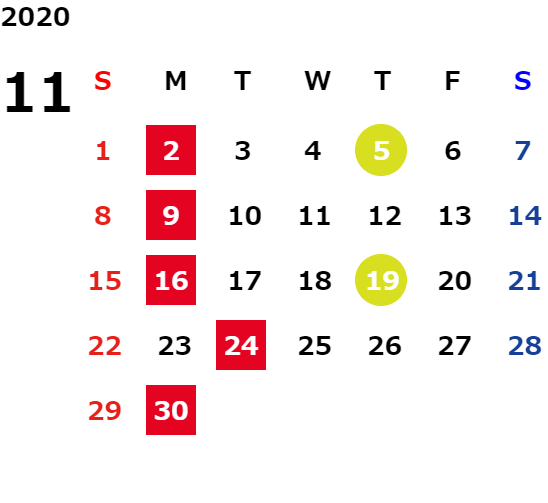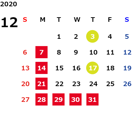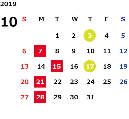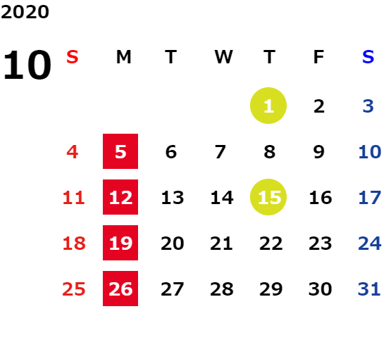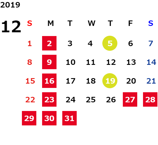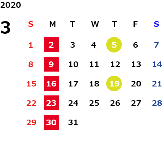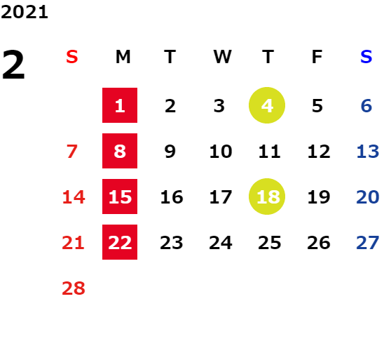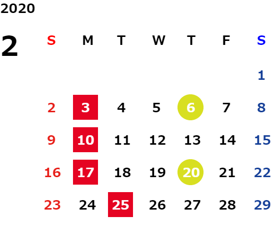 毎週月曜日(月曜祝日の場合は翌火曜日)