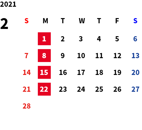 毎週月曜日(月曜祝日の場合は翌火曜日)