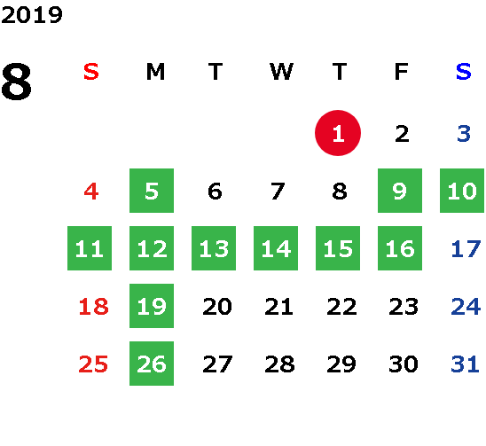 毎週月曜日(月曜祝日の場合は翌火曜日)