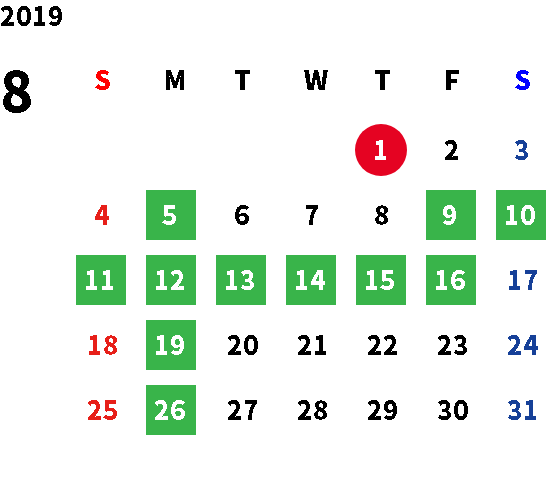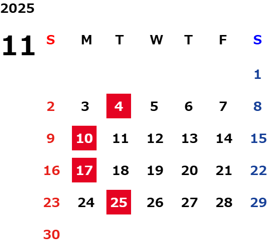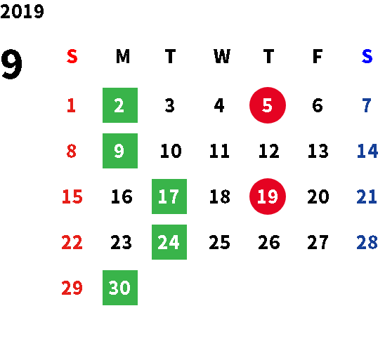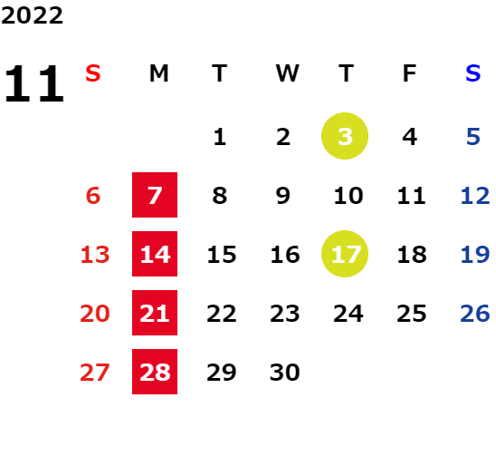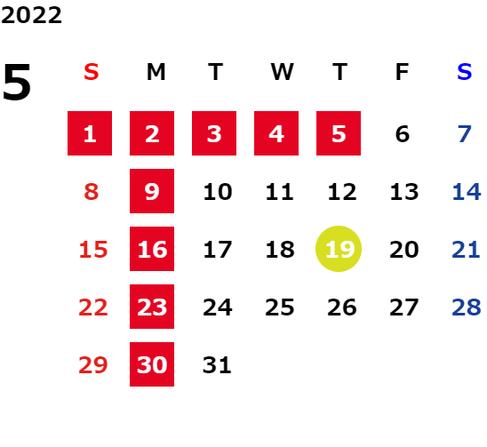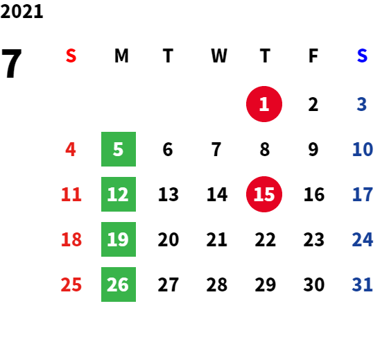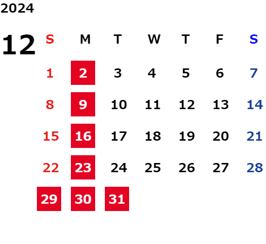 毎週月曜日(月曜祝日の場合は翌火曜日)