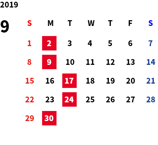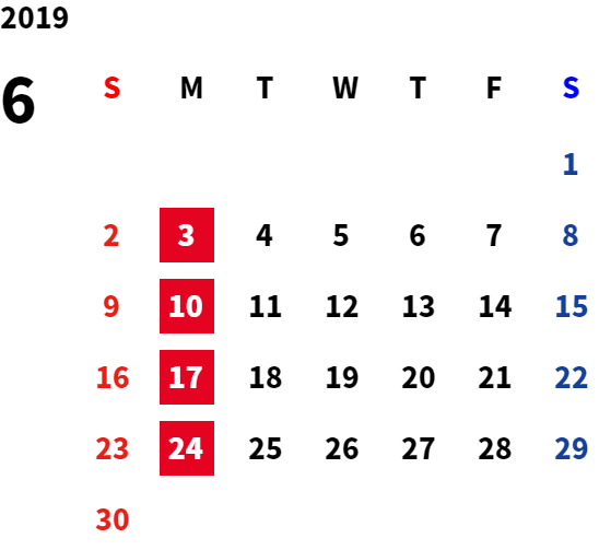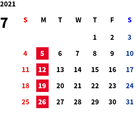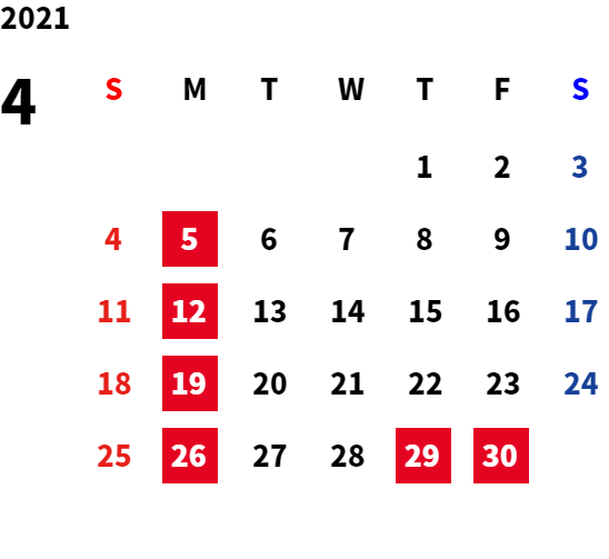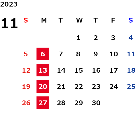 毎週月曜日(月曜祝日の場合は翌火曜日)