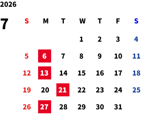 毎週月曜日(月曜祝日の場合は翌火曜日)