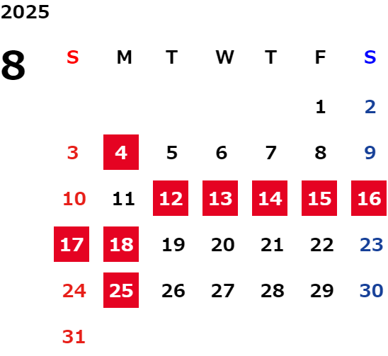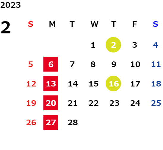 毎週月曜日(月曜祝日の場合は翌火曜日)